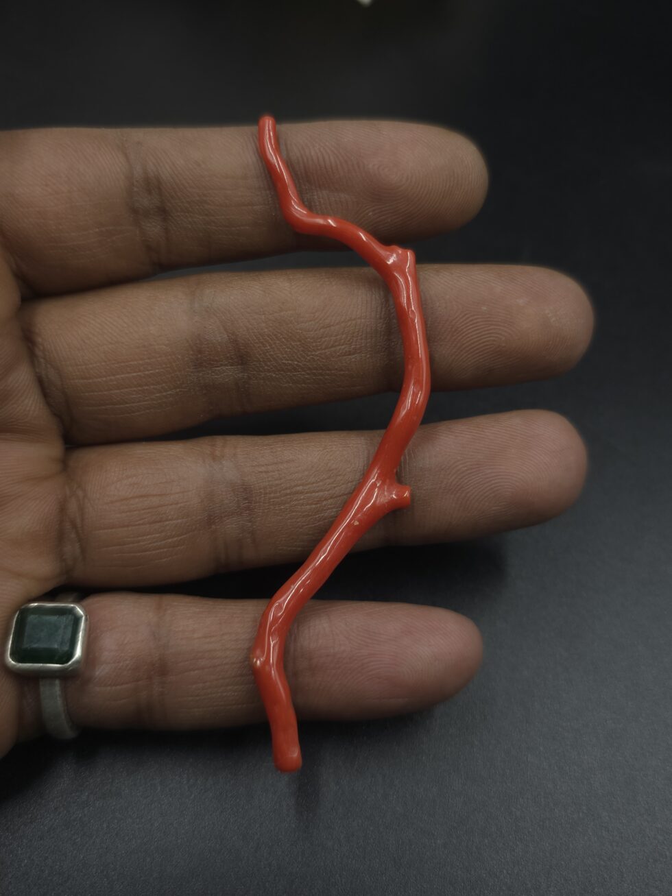 Its freeform shape and natural imperfections confirm its authenticity and make it a truly one-of-a-kind coral gemstone.