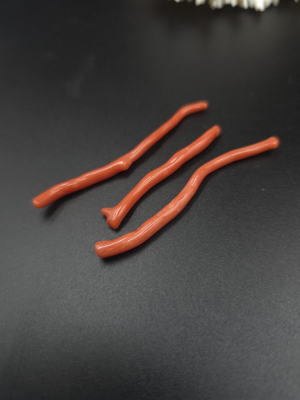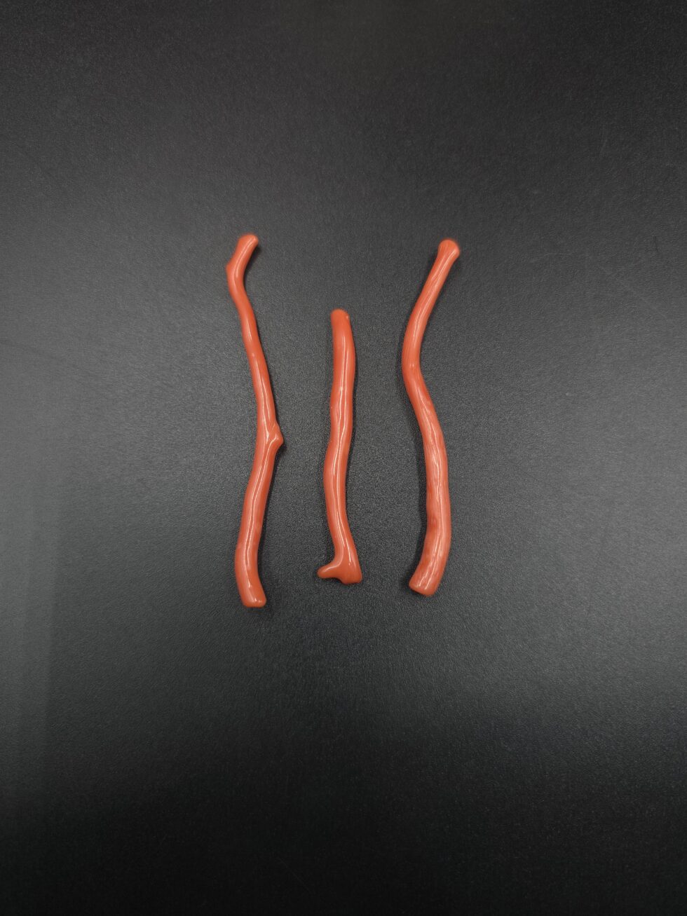 Natural Italian red coral polished long straight branches 3 pieces lot