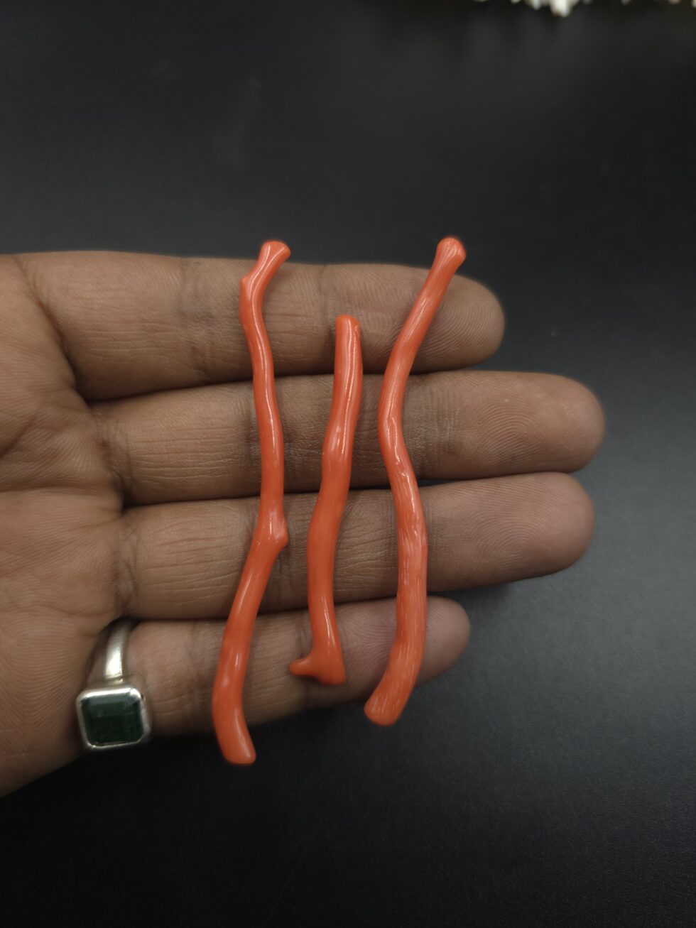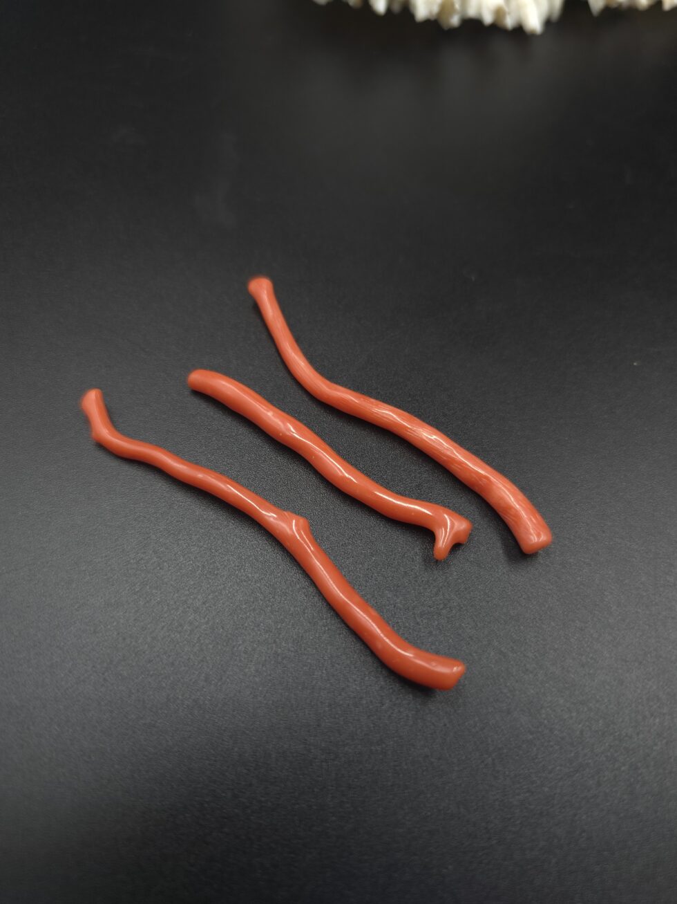 Presenting a rare and elegant Natural Italian Red Coral Polished Long Straight Branches – 3 Pieces Lot, sourced directly from the Mediterranean region of Italy. These coral pieces feature a naturally grown straight and elongated branch form, making them highly desirable for premium jewelry designs and collectors.